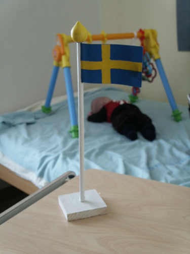 Max fick en flagga av personalen på avdelningen när vi blev utskrivna. Gulligt!