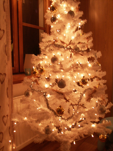 Vi har en liten udda julgran i år. Nämligen en vit (!!!) julgran.