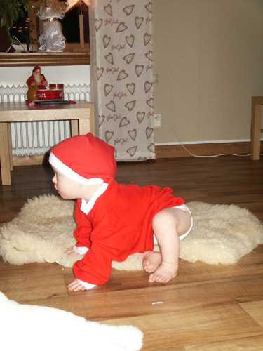 Skulle ta lite kort på Max i tomteluva idag, men det var lättare sagt än gjort. Han brukar vara medgörlig och gilla vara med på bild, men icke denna gång. Han ville inte vara med på kort =) Så det blev många kort då han bara är till hälften med på bild. Ibland bara rumpan. Kolla bara ……