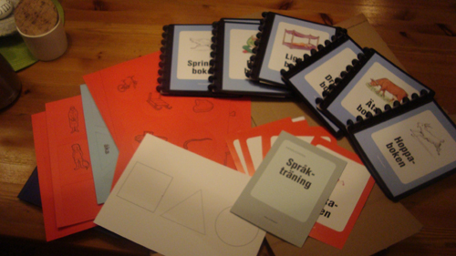 Idag fick vi paketet från ”teckenhatten” med språkträningsmaterial enligt Karlstadmodellen Irene Johansson.