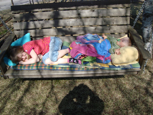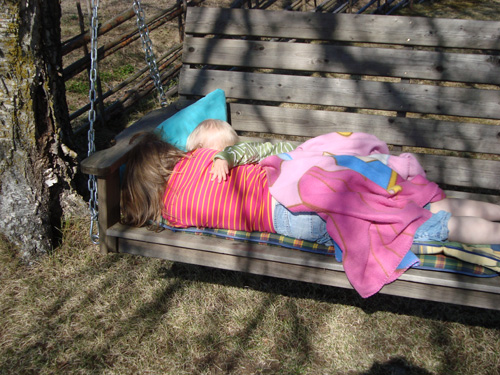 Barnen låg både och myste i gungan ……