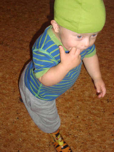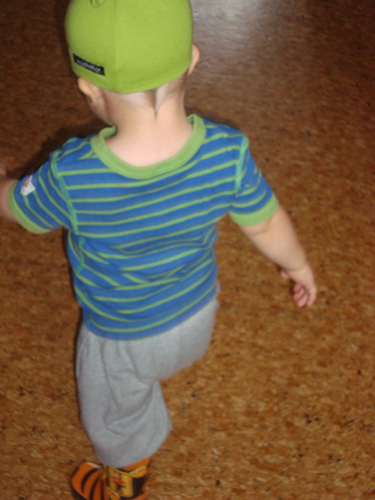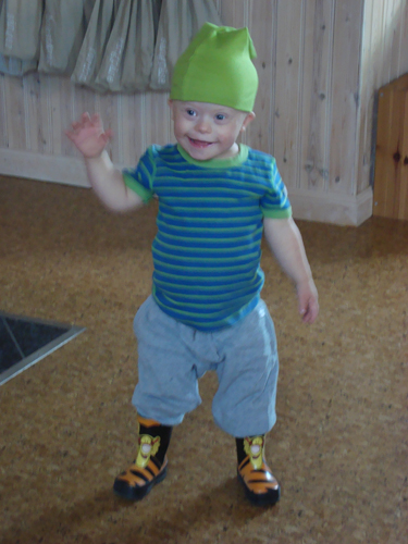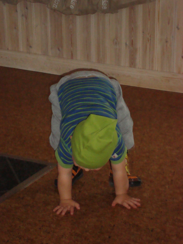 En dag var Max ut och hämtade och tog på sig sina stövlar och mössa i hallen och så skulle han ha gympa för oss =)