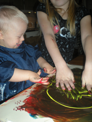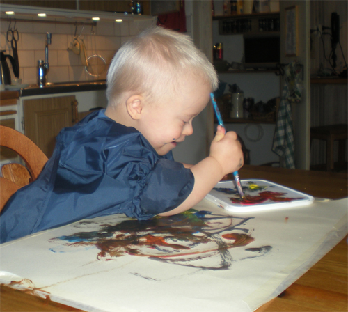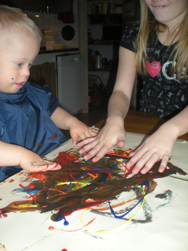 De ville även fortsätta måla idag. Men det blev mest kladd (!!)