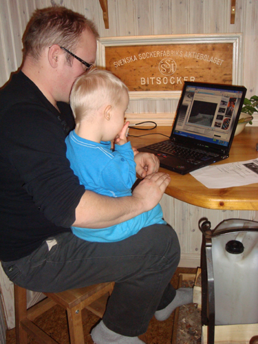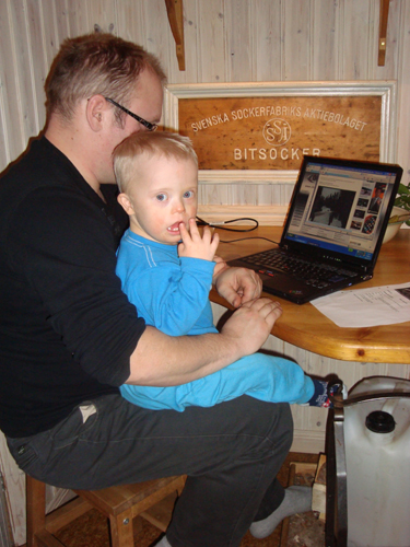 Då ska han förstås sitta i Freddes knä och titta på rally – klipp på nätet. Det är superskoj ! Ja, blir inte detta en ”rally-kille” så vet inte jag. Tänk när han blir äldre och får följa ut i garaget med grabbarna. Oj,oj….
