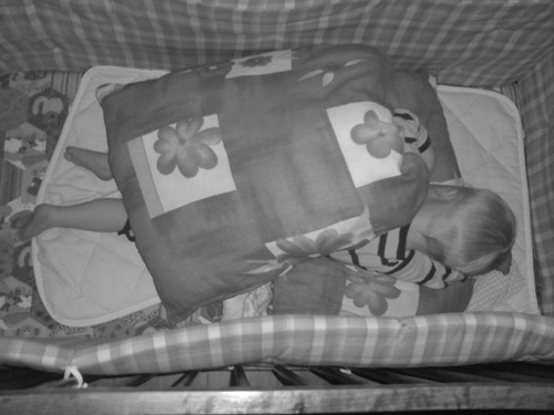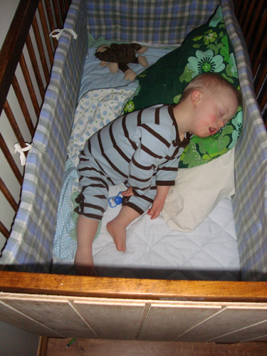 Så här sov han faktiskt hela natten. Han hittade nog