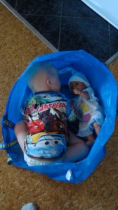 dockan i en stor IKEA påse =)
