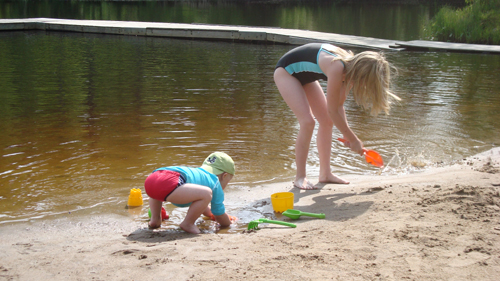 Vi har hunnit vara en del på byns badplats och plaska.