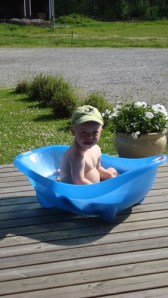 plocka fram badbaljan och han badade ute i den varma