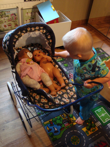 Vi hämtade in dockvagnen och docksängen