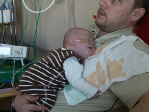 hjärtoperation och då är det tryggt i pappas famn…