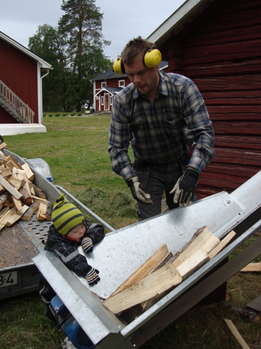 …och det är ju spännande då man lägger veden på rullbandet