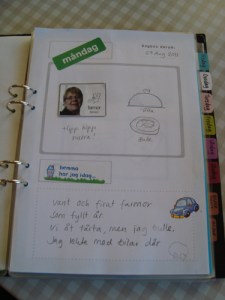 • Anna det vore jättesnällt om du ville maila det till mig. Skickar ett mail till dig. Om det inte blir till idagboken så kommer det alltid till nytta för andra saker:) idagboken har jag lite problem att få dagis att skriva just nu:( har nyas fått den och ska skriva en prov vecka hemma. Allt är så nytt så inte riktigt satt mig in i hur den ska skivas men förstått att där dagens datum står så ska man skriva va som händer under dagen och inuti både jag och dagis.