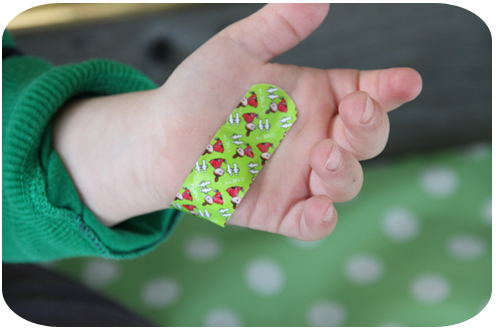stickor ur handen och så plåster