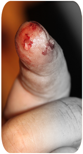 rengöring av såren. De ville inte sy,