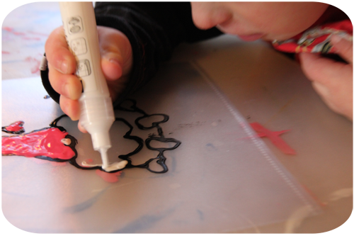 Sedan börjar man med konturfärgen