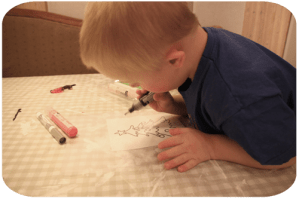….här fyller Max i sin tomte och noggrann är han,