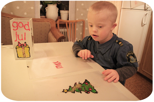 …han hade även fyllt i texten god jul och vi klistra