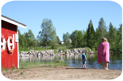 och Max att fara ner till Brukets badplats