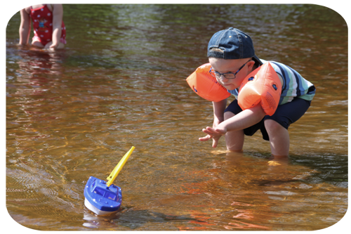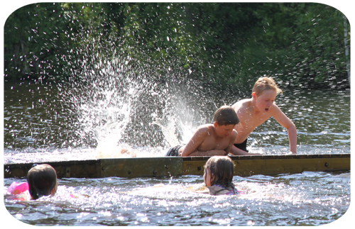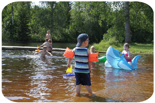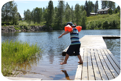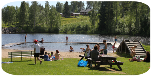 ner till badplatsen i byn ….