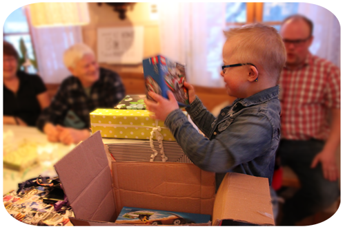 Max fick många paket och det
