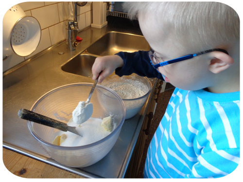 så Max är ju morgonpigg, så i morse bakade vi.