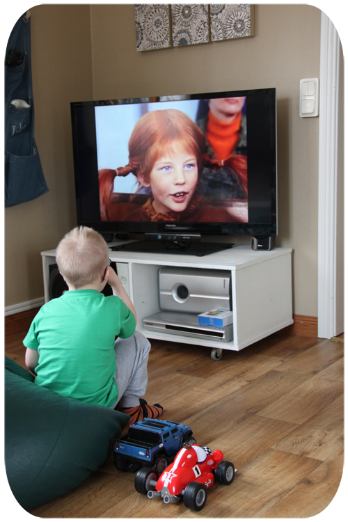 …Max sitter och ser Pippi filmer