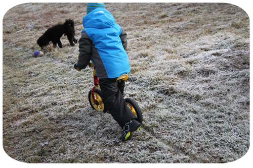 cykla och göra spår i frosten….