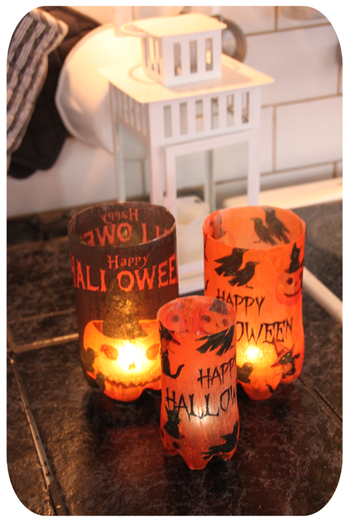 gjorda av petflaskor och decoupage
