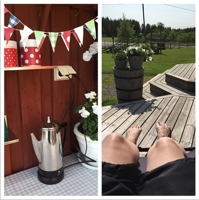 kom ut till en strålande ☀️ sol och satt på kaffe ☕️ och jag