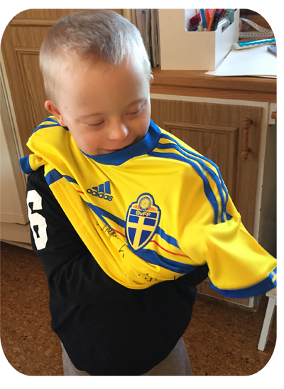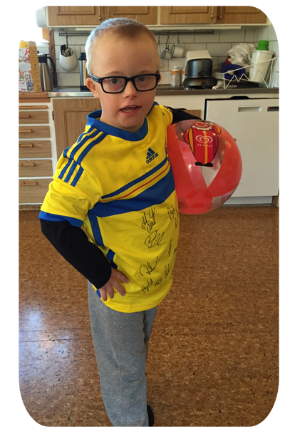 Tänk att ha en riktig landslagströja, och dessutom signerad av spelarna!