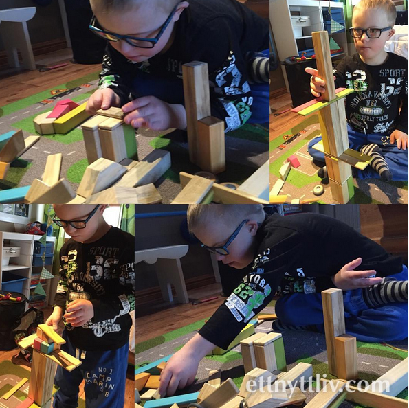 träklossar, som vi bygger med