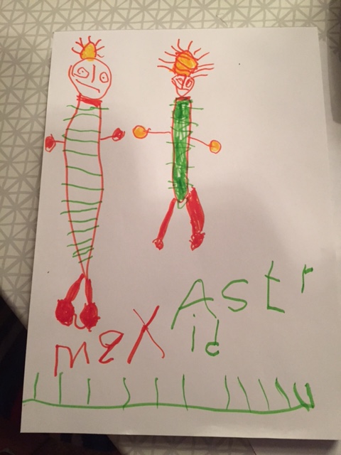 Jag frågar vad han ska rita.