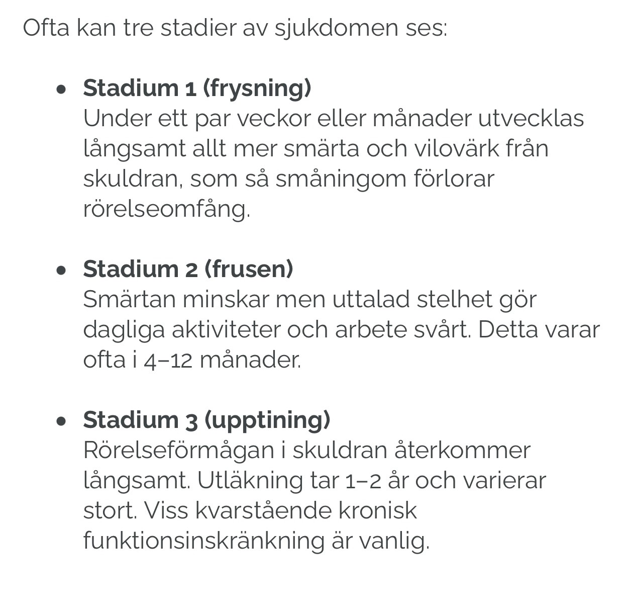 skuldra är det 3 stadier man ska igenom