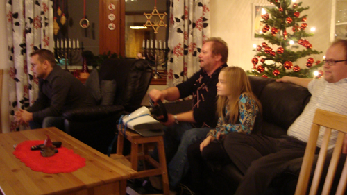 Julaftonen fortsatte med ”rallycross” och ”rally” framför TV:n.