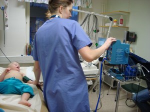 Sedan till nästa rum där en sköterska tog först