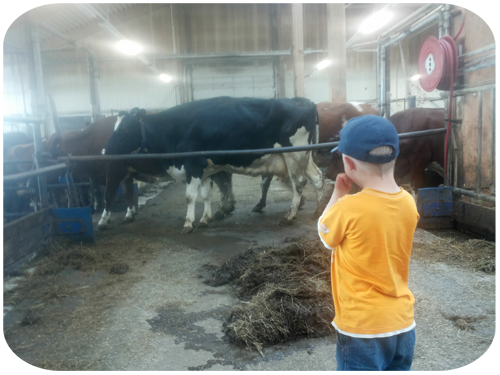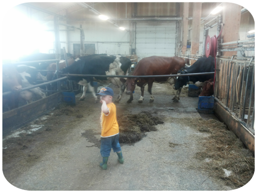 nu i en ladugård med en