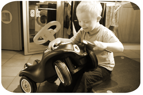..den kör han ofta, både leker med den,
