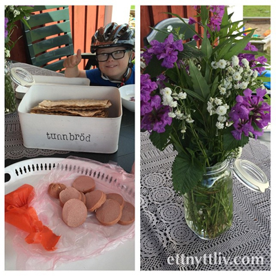 med nyplockade blommor från rabatten👌 … och så