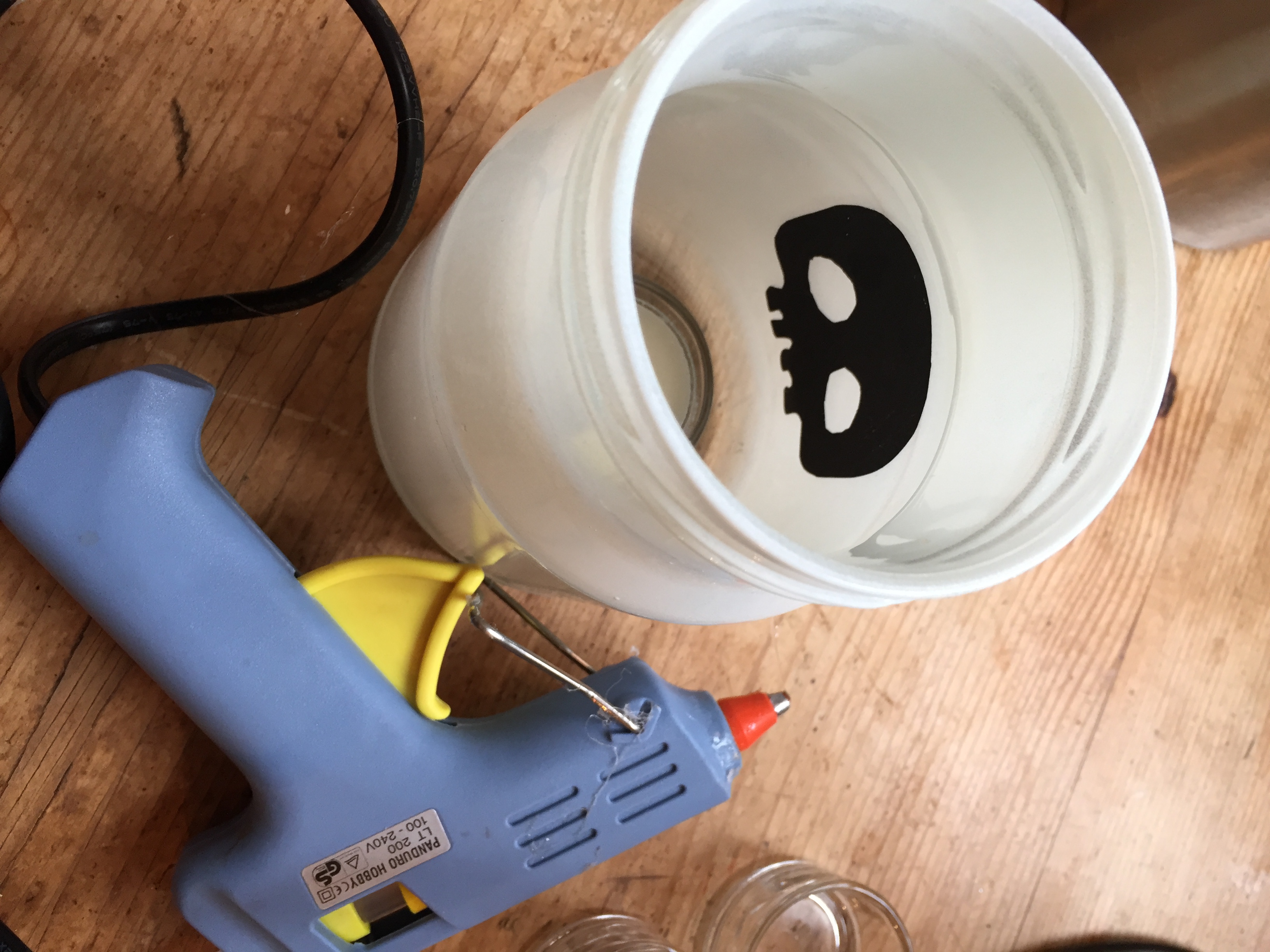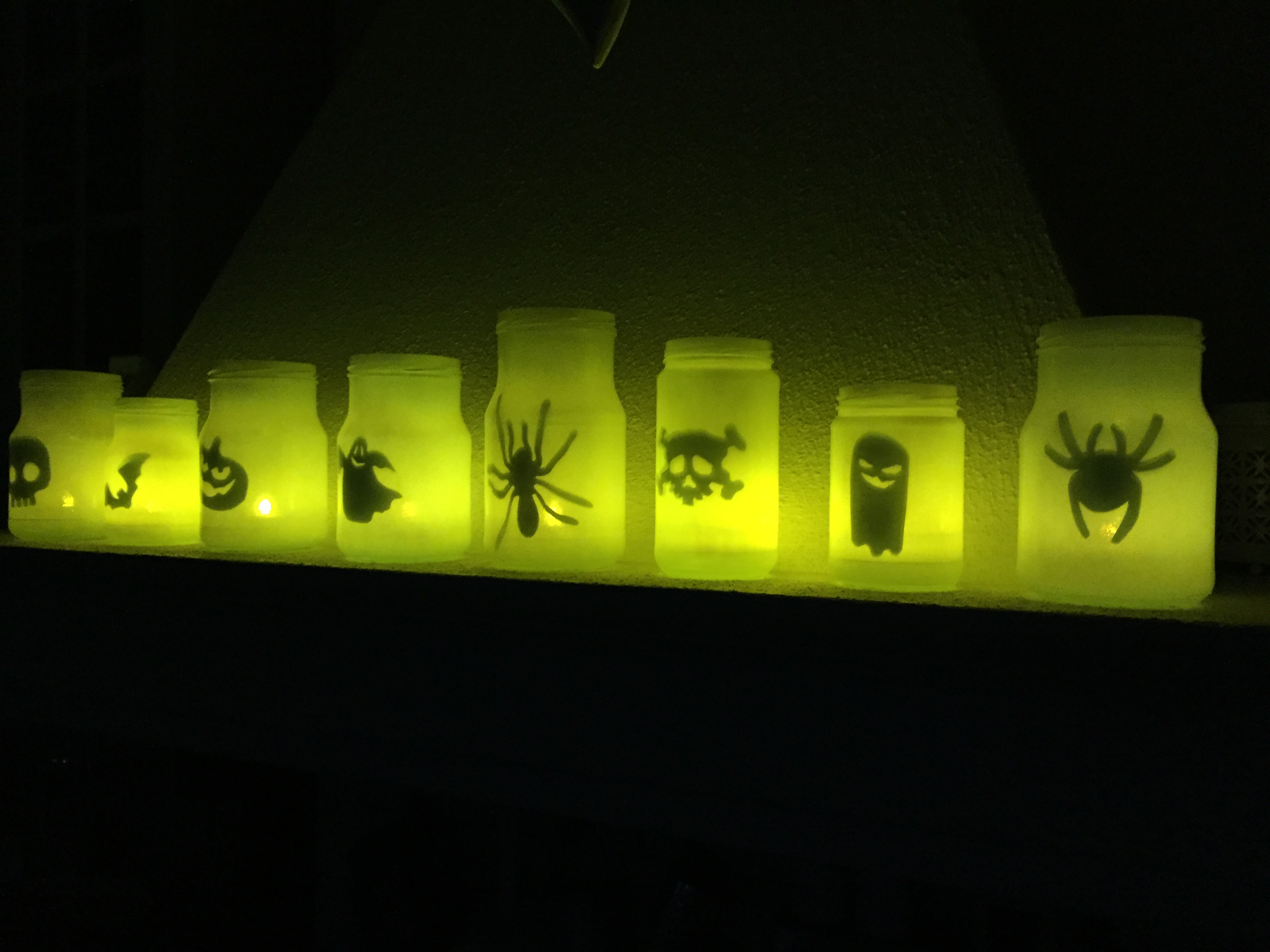 vita glasburkar och batteriljus