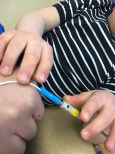 07.45 Lastar Max i vagnen, ner till röntgenavdelning