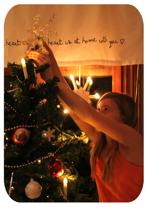 storasyrran åt att klä julgranen