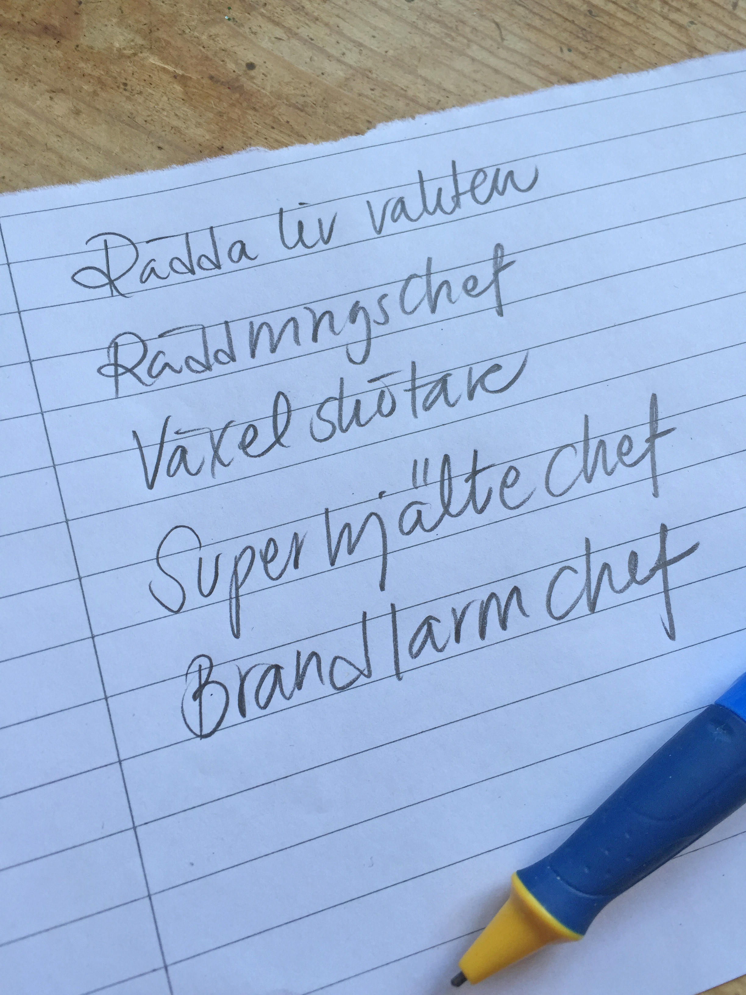 på papper och vi laminerade det och satt