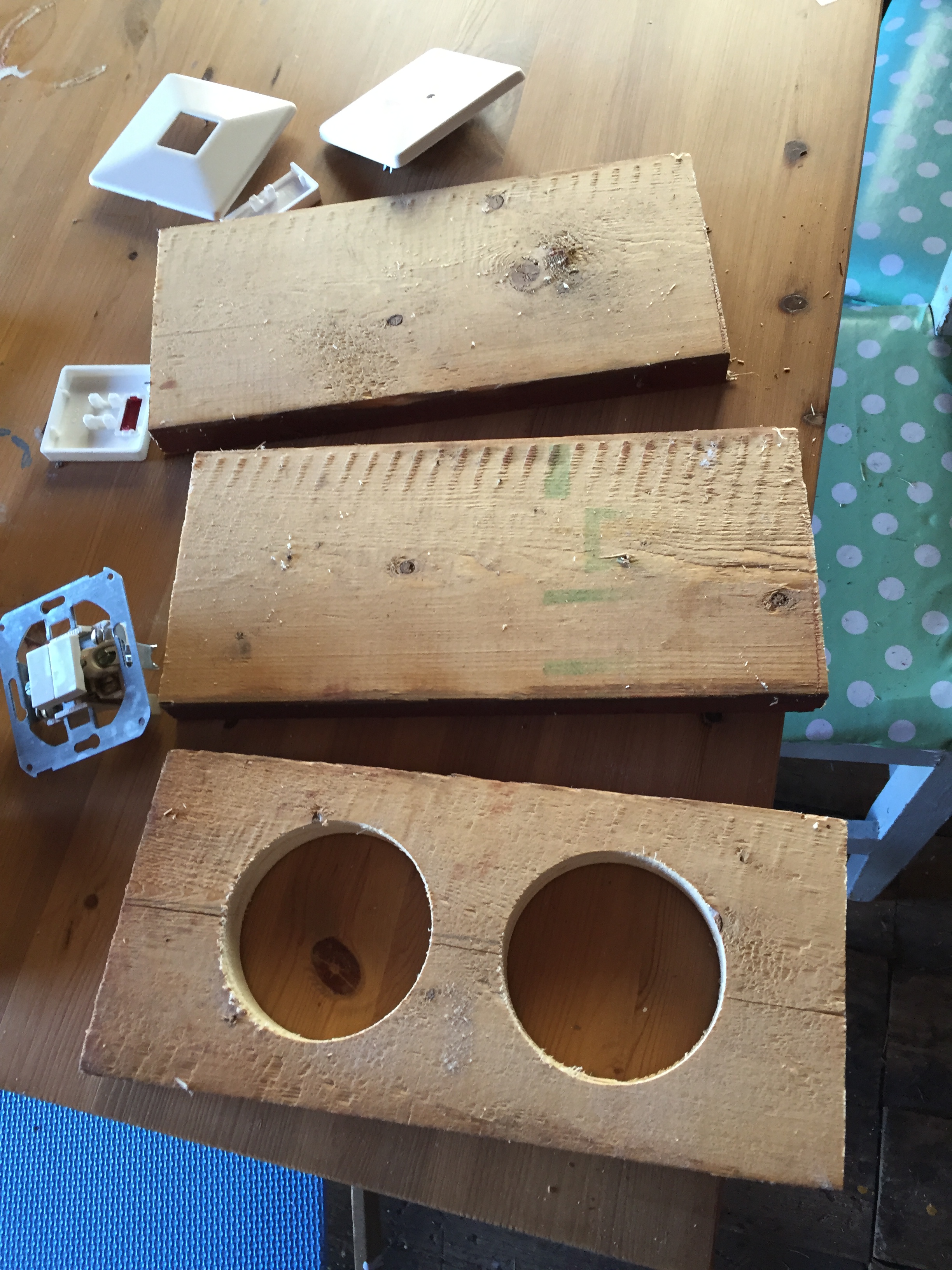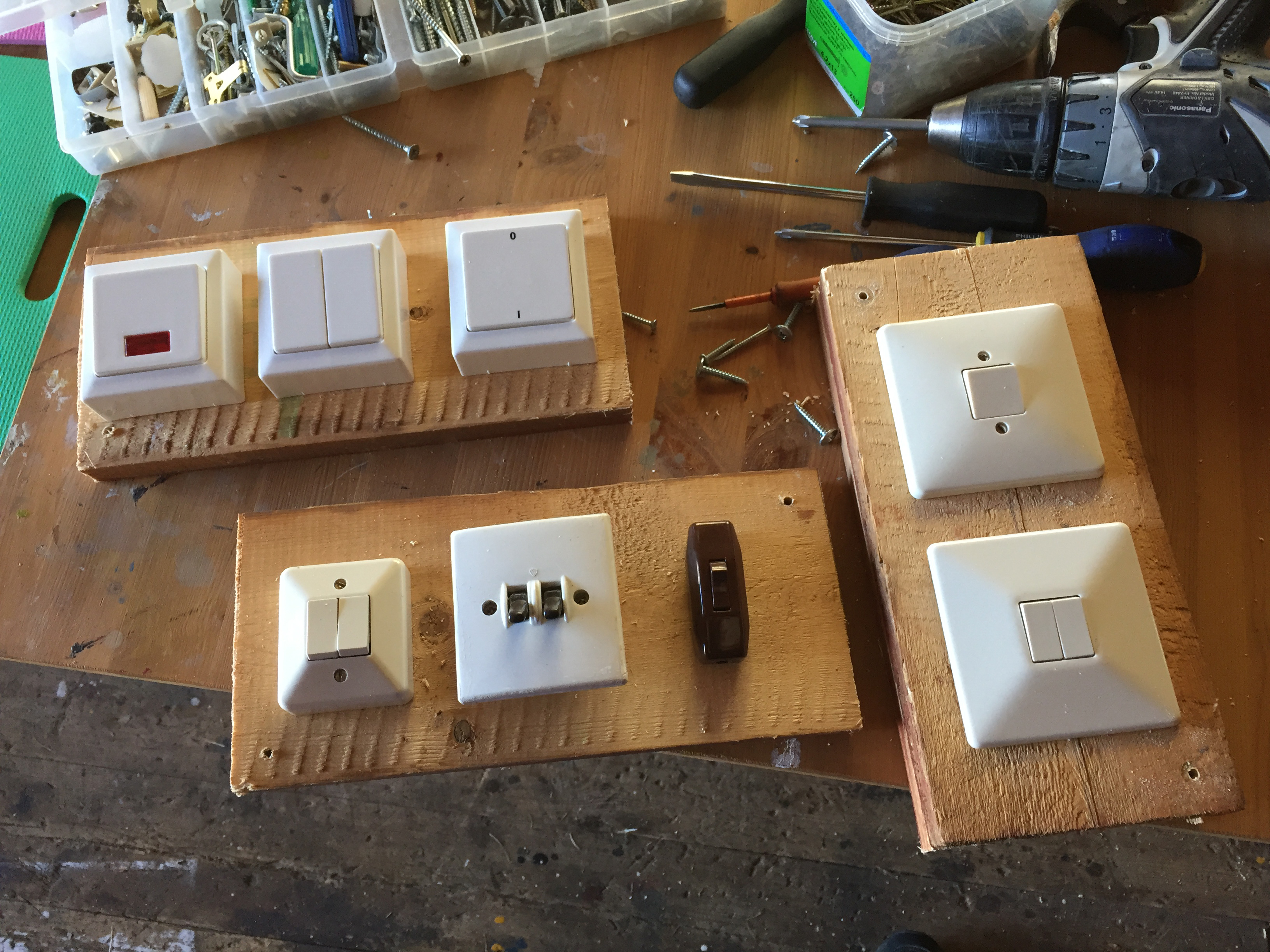 några av strömbrytarna på några brädbitar