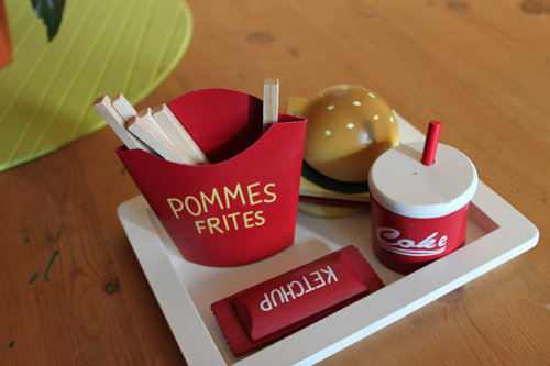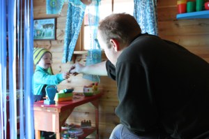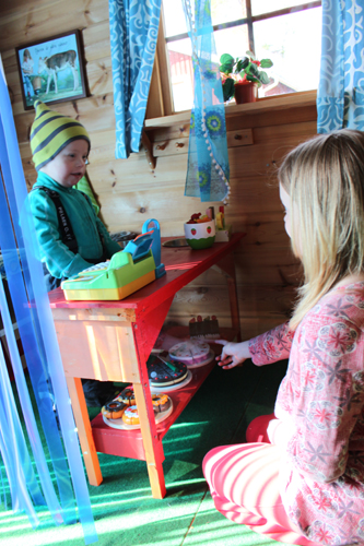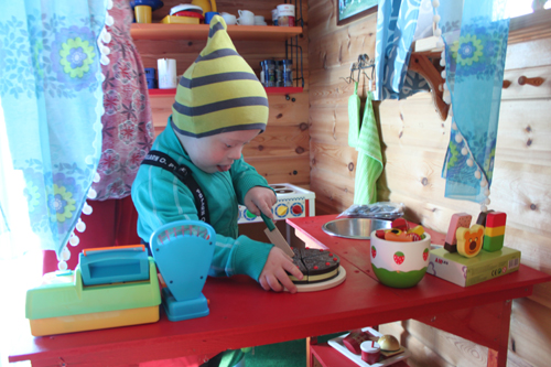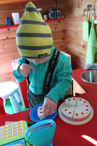 där han leker affär eller café eller restaurang.