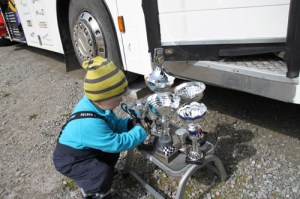 alla pokaler ur bussen för att gå in med dem