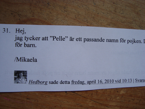 namn till. Men det var så att ”pappsen” kläckte ur sig ett sånt