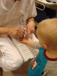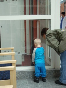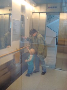 med pappa på jobbet ett tag innan de ska