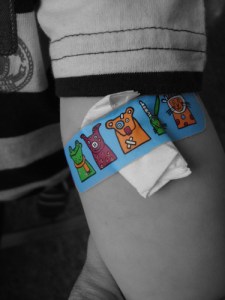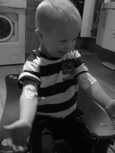 då vi skulle klistra emla plåsterna i armveckan….
