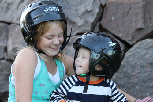 med skor. Hann ju prova några innan vi hittade dessa