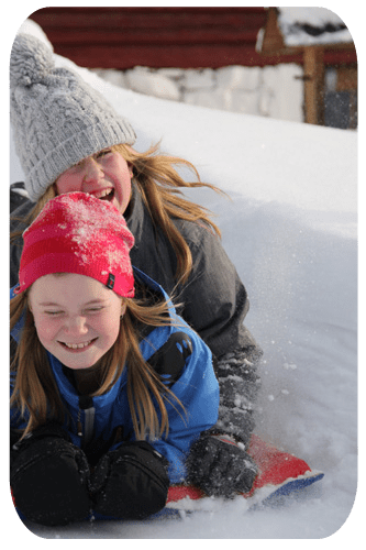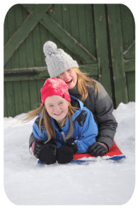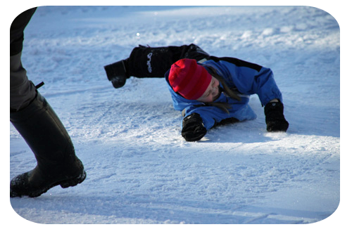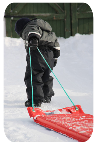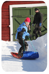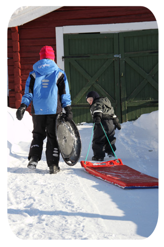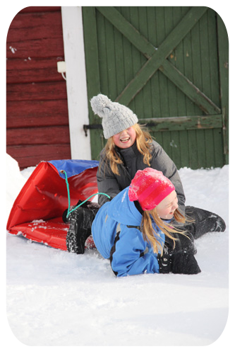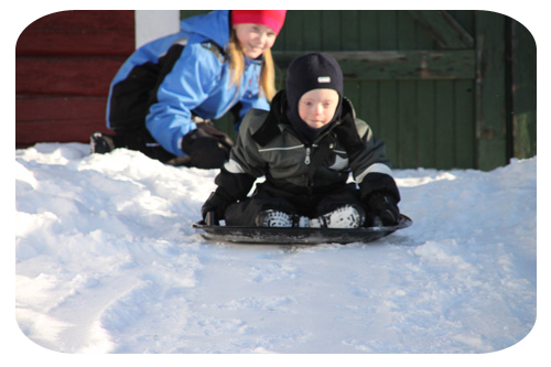 medan barnen dundrade nerför backen…